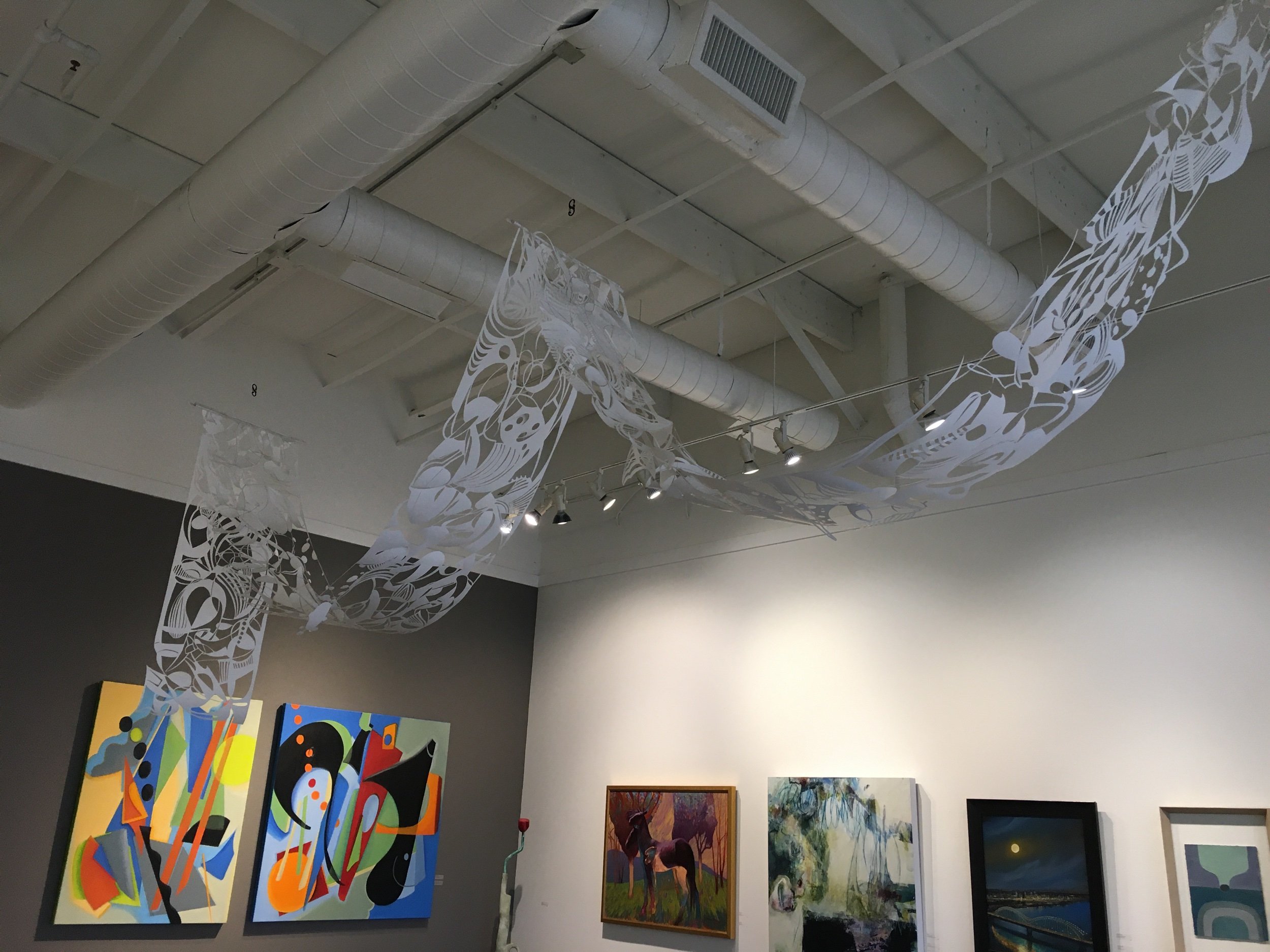 Drifting and Floating, 10in x 40in, hand cut yupo paper suspended